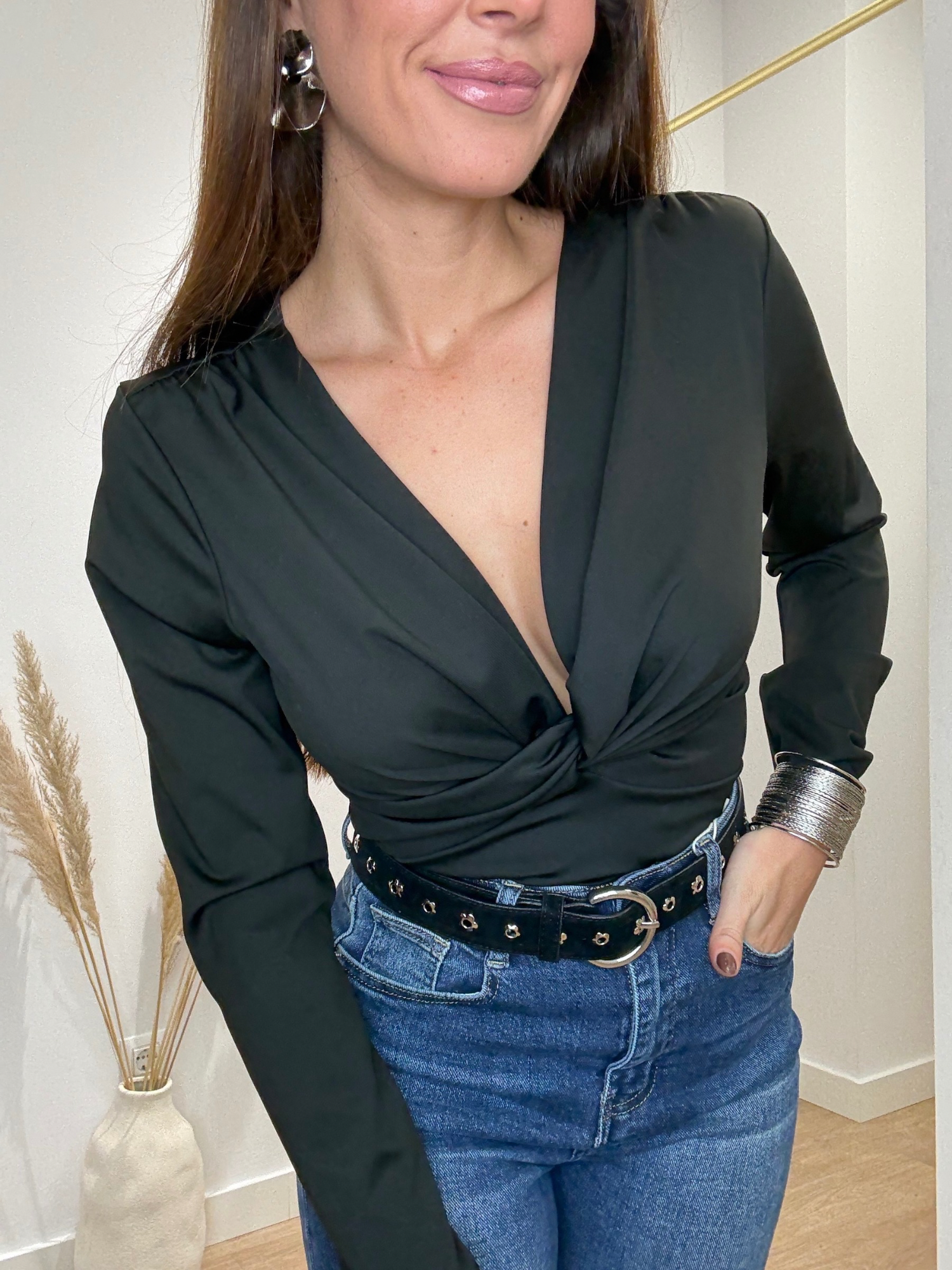 El básico con el que te sentirás irresistible, favorece muchísimo gracias a su corte cruzado y al tejido fluido que se adapta como un guante. Es perfecto para esos días en los que quieres sentirte guapa sin esfuerzo, ya sea con vaqueros o con un pantalón de vestir para un look más sofisticado. Talla única (que en este modelo equivale a 36/38/40)