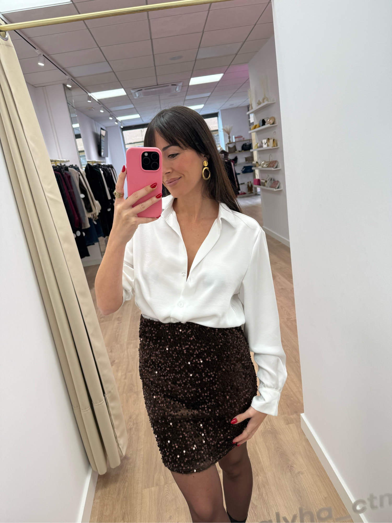 Cuando quieres un look de fiesta que llame la atención sin complicarte la vida, esta falda de lentejuelas marrón se convierte en tu mejor aliada. Talla única (que en este modelo equivale a 36/38/40)